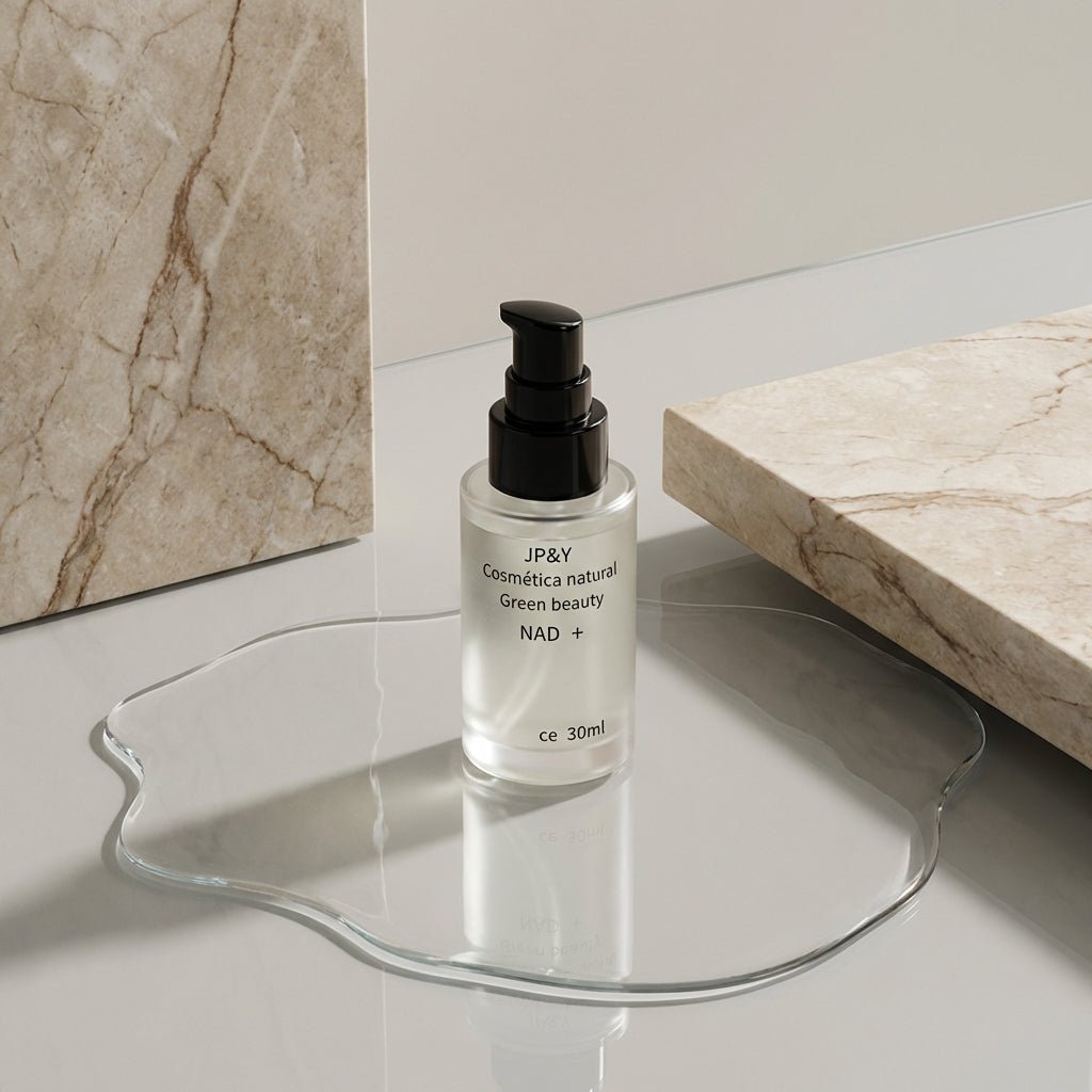 El NAD + (Nicotinamida adenina dinucleótico) es una coenzima esencial en el metabolismo energético, la reparación del ADN y otras funciones celulares clave. Los niveles de NAD disminuyen con la edad, por lo que contrarresta algunos de los efectos del envejecimiento, como la pérdida de energía y la degeneración celular (tan importante en la piel).